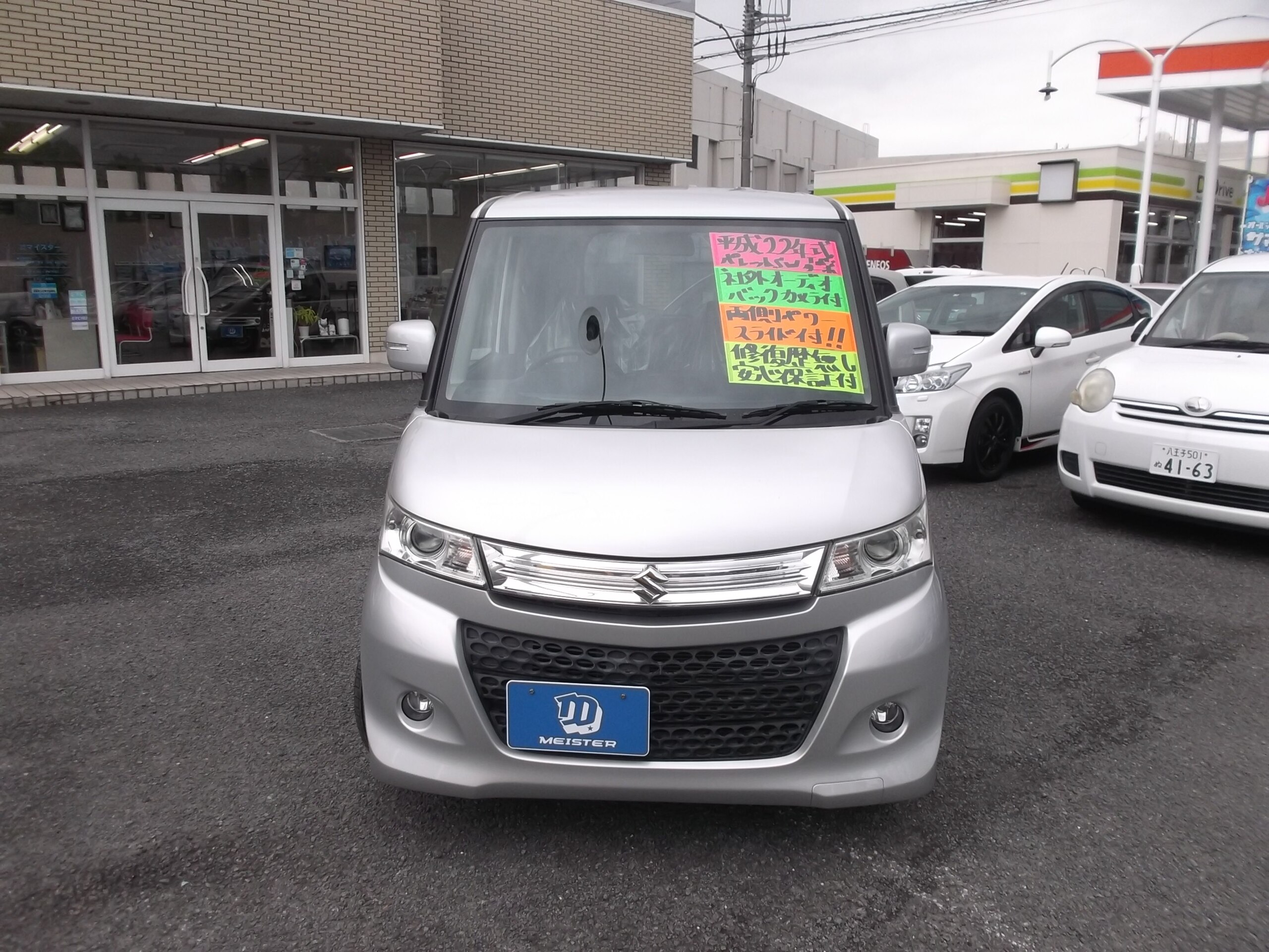 | 装備仕様 | パワステ / パワーウインドウ / エアコン・クーラー /過給機設定モデル/ キーレス / スマートキー/ベンチシート/フルフラットシート/ディスチャージヘッドライト/カメラ/バック ABS /横滑り防止装置/盗難防止装置/エアバッグ:運転席/助手席/ サイド/フルエアロ/アルミホイール/スライドドア両側電動/ |